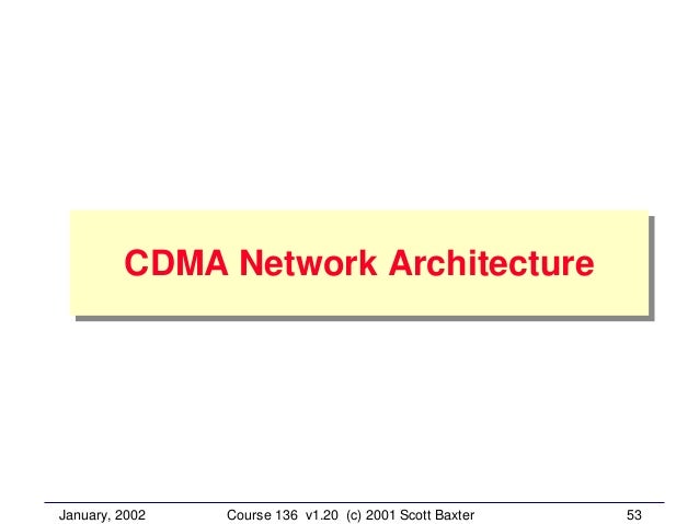 CDMA i About the Tutorial Code Division Multiple Access (CDMA) CDMA ─ NETWORK multicarrier implies N x 1.25 MHz channels overlaid on N existing IS-95 carriers or deployed on unoccupied spectrum. CDMA2000 includes: ... Read Here